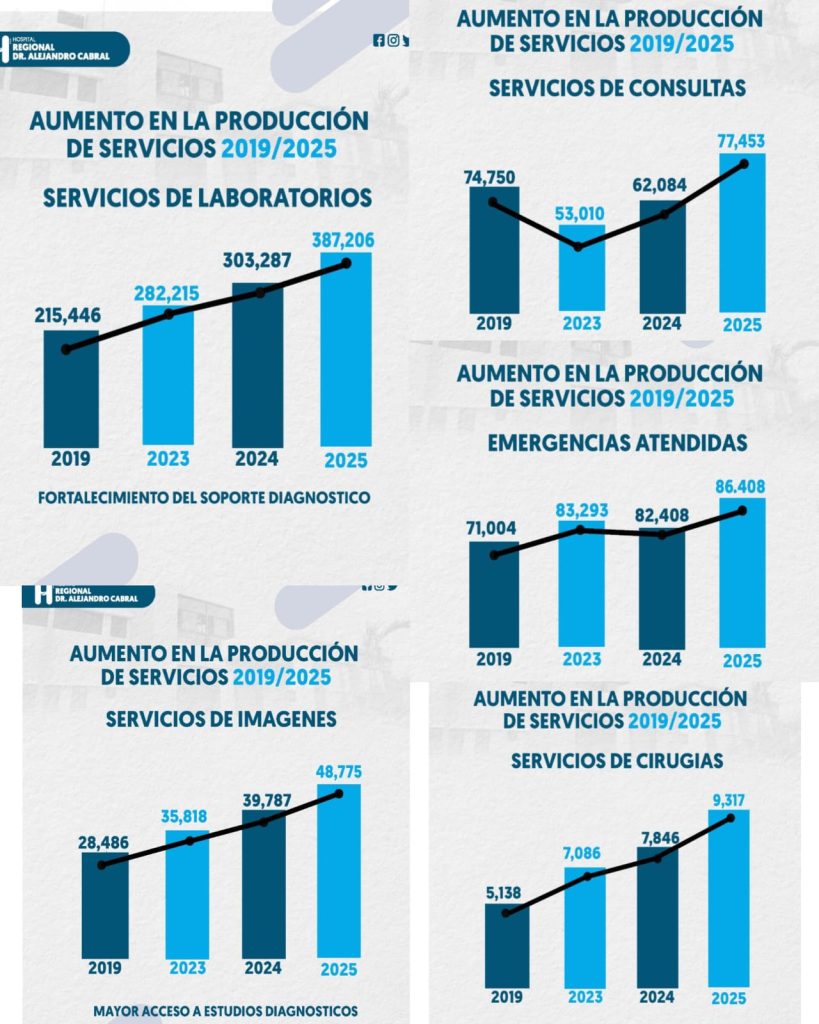 Portada » Hospital Regional Dr. Alejandro Cabral evidencia aumento en servicios de salud entre 2019 y 2025