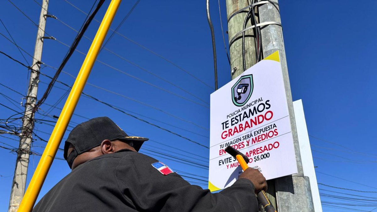 En el marco de las acciones para mantener una ciudad más limpia y segura, agentes de la Policía Municipal de la Alcaldía de San Pedro de Macorís continúan con la instalación de cámaras de vigilancia y letreros de advertencia en distintos puntos del municipio.