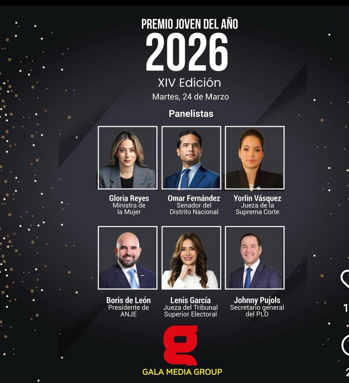 Santo Domingo, RD.- Gala Media Group celebró la XIV edición del Premio Joven, en una ceremonia que reunió a representantes del sector público, empresarial, político, jurídico, municipal y mediático, para reconocer a figuras jóvenes y líderes emergentes por sus aportes al desarrollo de la República Dominicana.