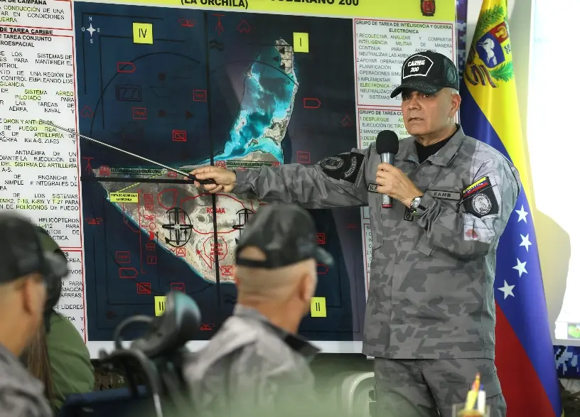 Mientras tanto, el ministro de Defensa de Venezuela, Vladimir Padrino, anunció ayer un ejercicio militar que incluye maniobras aéreas, marítimas y terrestres, y la movilización de más de 2,500 efectivos durante tres días en la isla de La Orchila, en el Caribe venezolano, ante la que considera “amenaza” de EE.UU., que mantiene un despliegue naval en aguas internacionales cerca a la región. Además, 12 buques de la Armada “en sus diferentes clases y tipos”, 22 aeronaves y una veintena de embarcaciones participarán.